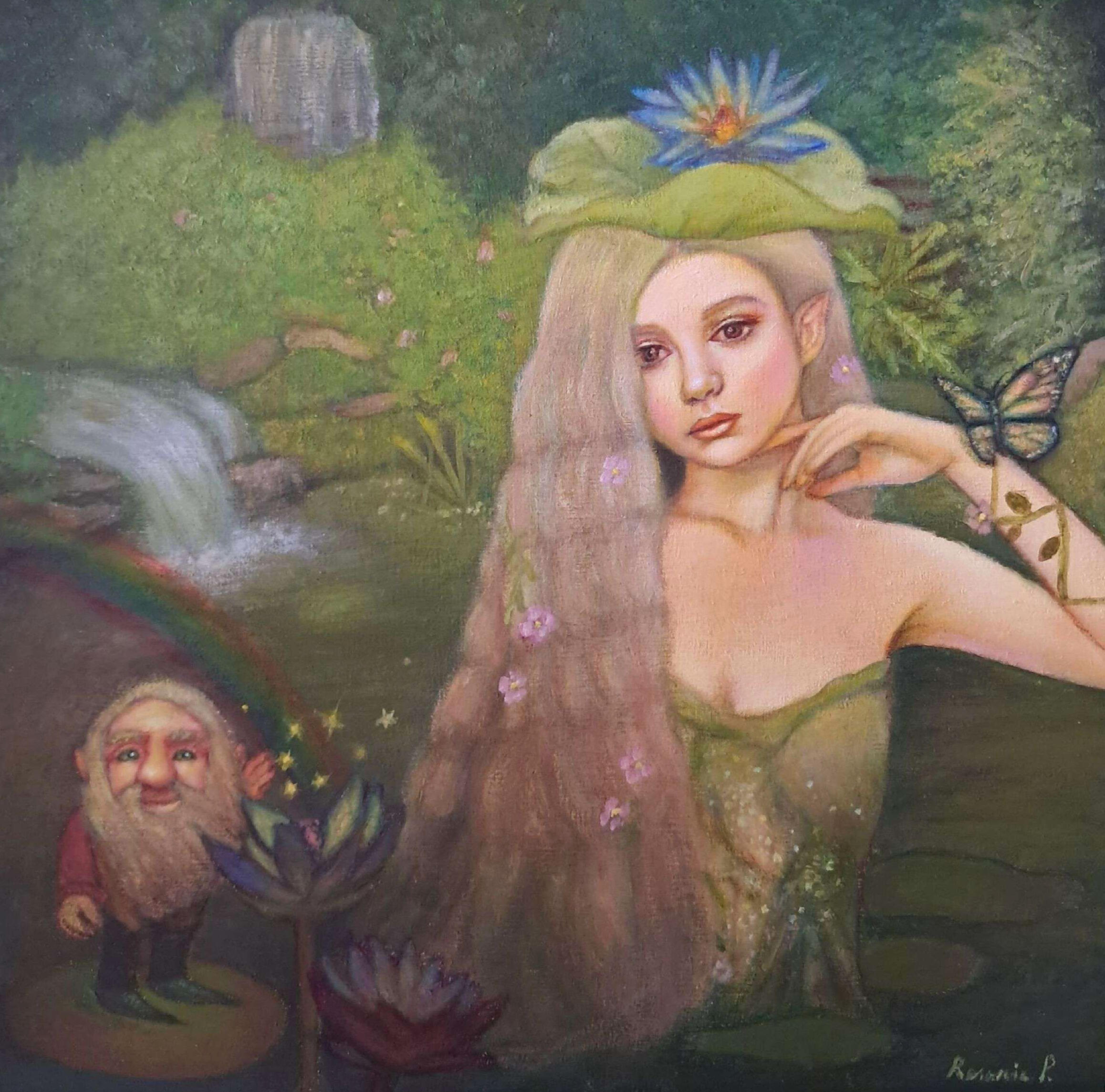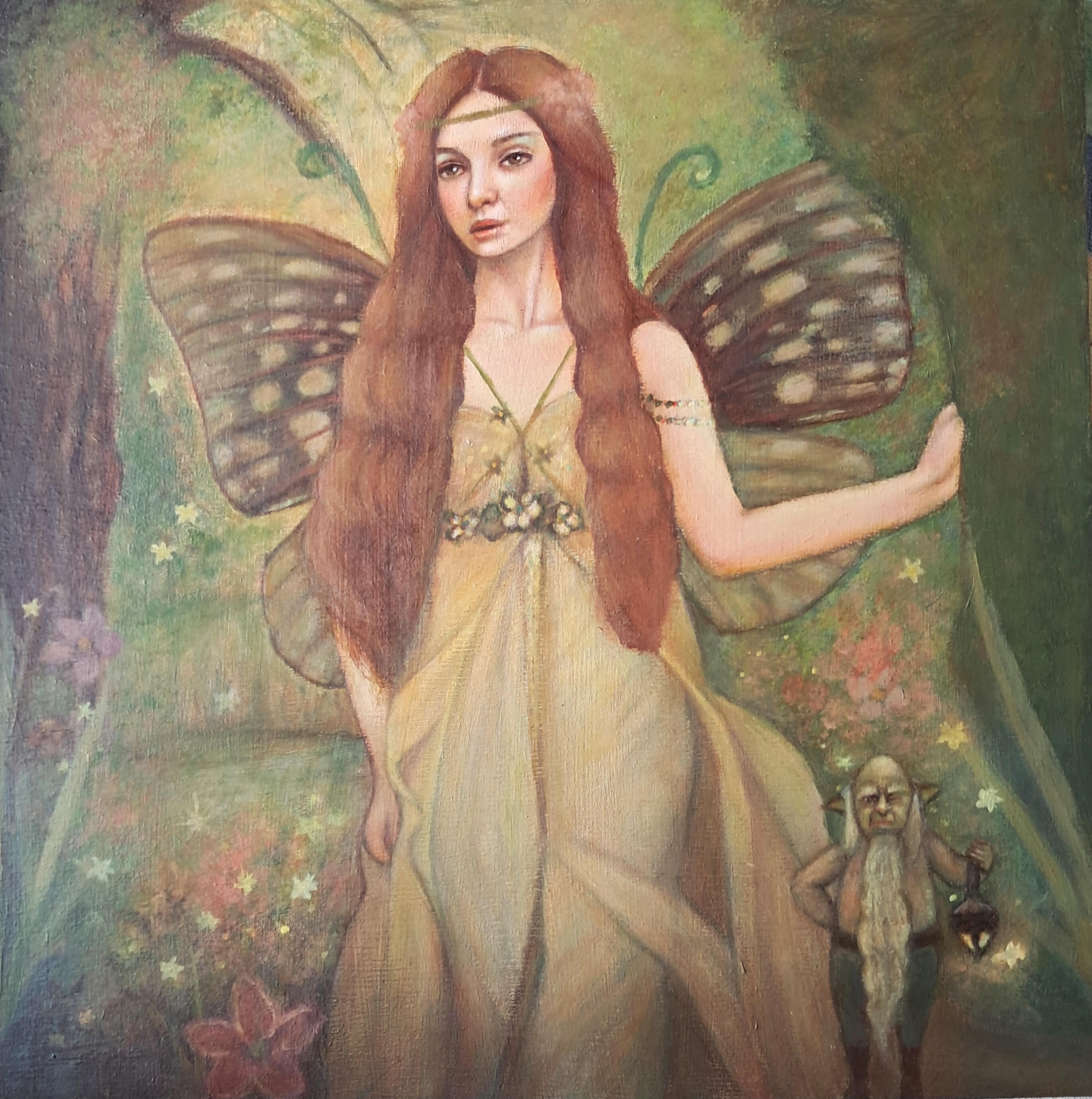 My biggest inspiration when I paint a new artwork is nature, full of mysteries and magical little creatures. When I walk into my garden, I can't help but think about all of the hidden fairies, pixies and gnomes that may live there, so I want to create an enchanted world where this is possibile!