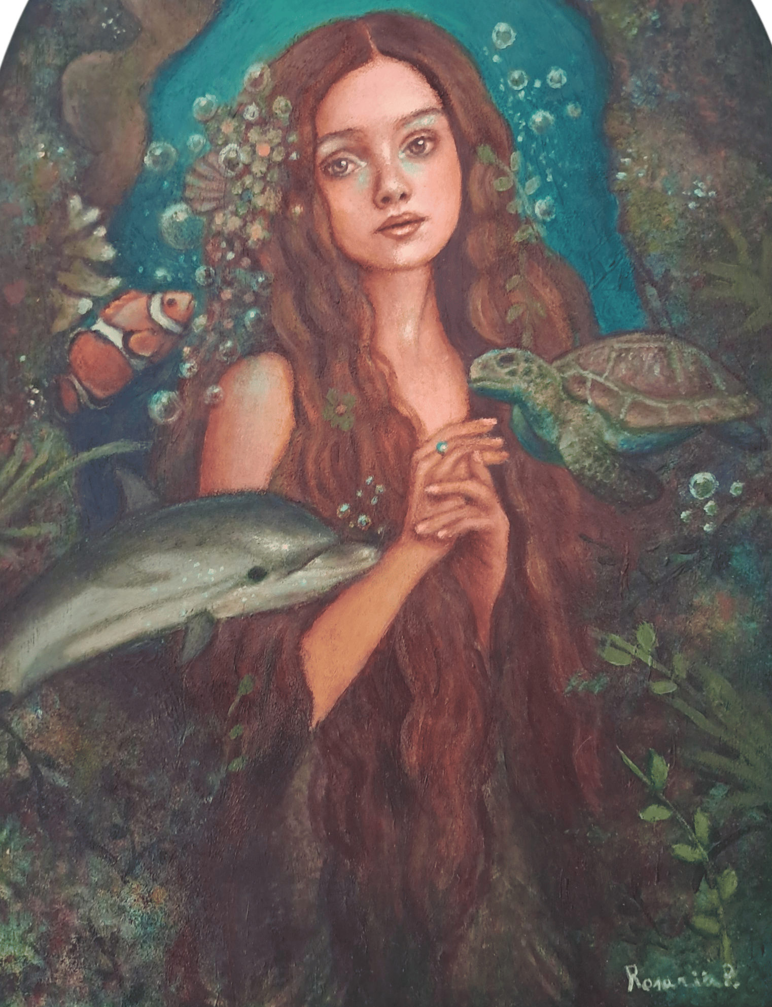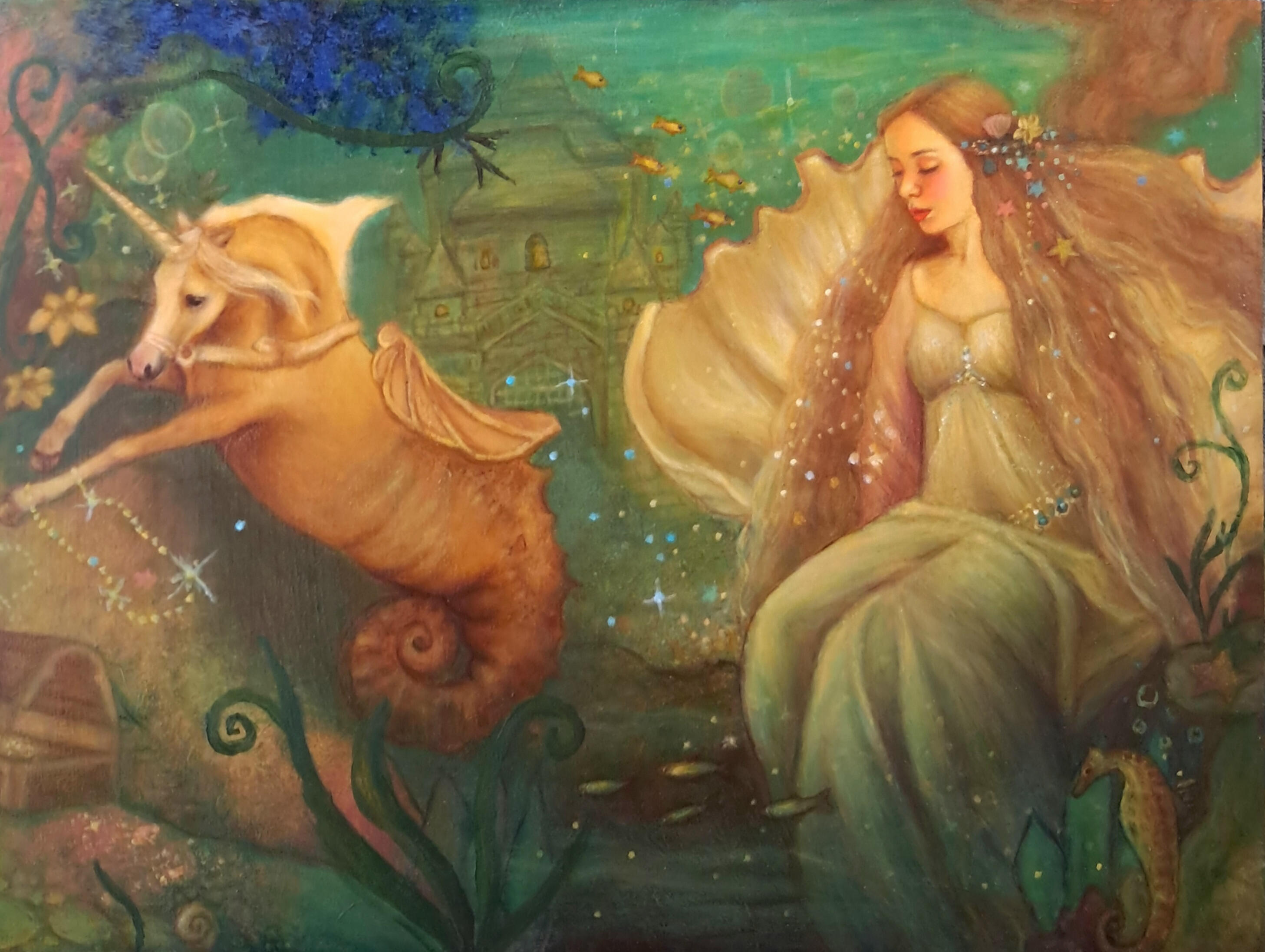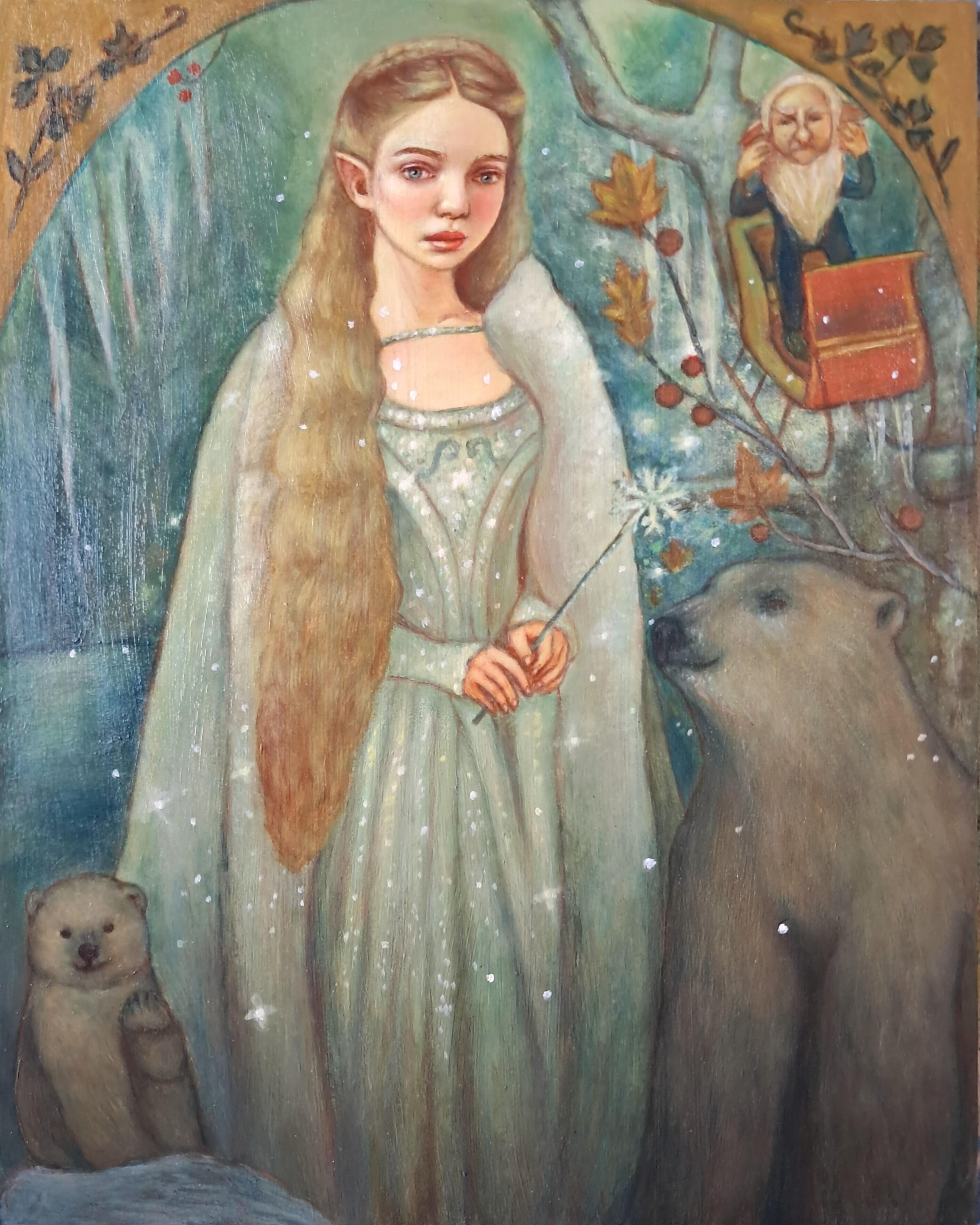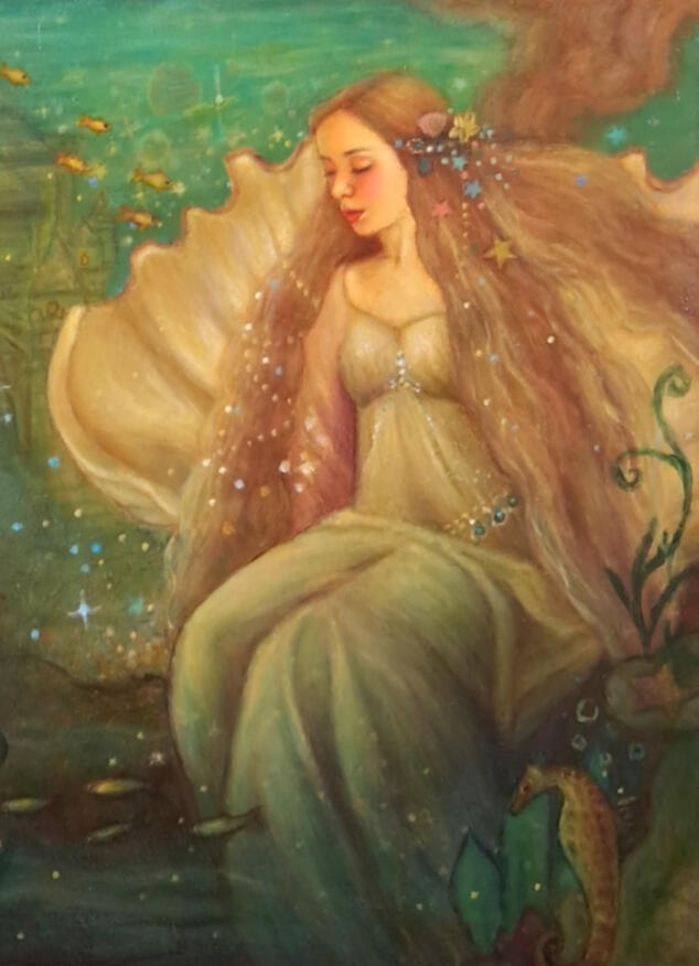 The subjects of my pieces are usually beautiful fairies, mermaids and magical girls in a folklore fairytale setting, full of animals and beautiful plants, and other fun mystic creatures.